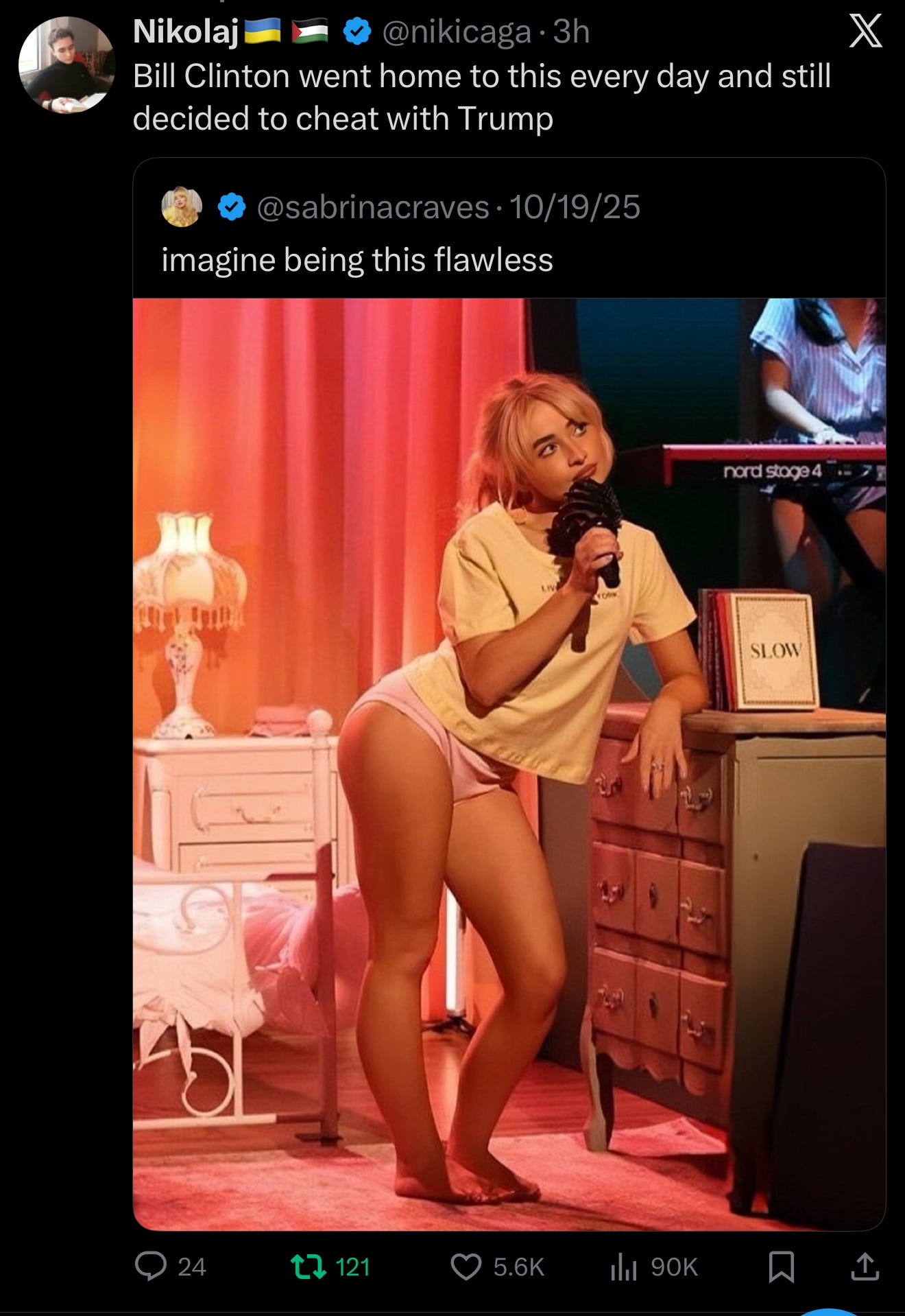 And, finally, whereas Sydney has a fanbase of seemingly exclusively disturbed young men to whom she sells her bathwater soap, Sabrina has female fans, gay fans, and the incel creeps. See below: